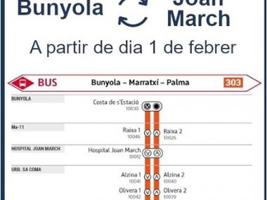 A partir de dia 1 de febrer, la línea 303 modifica el seu itinerari ab una nova extensió de servei fins el poble de Bunyola (Costa de s'Estació)