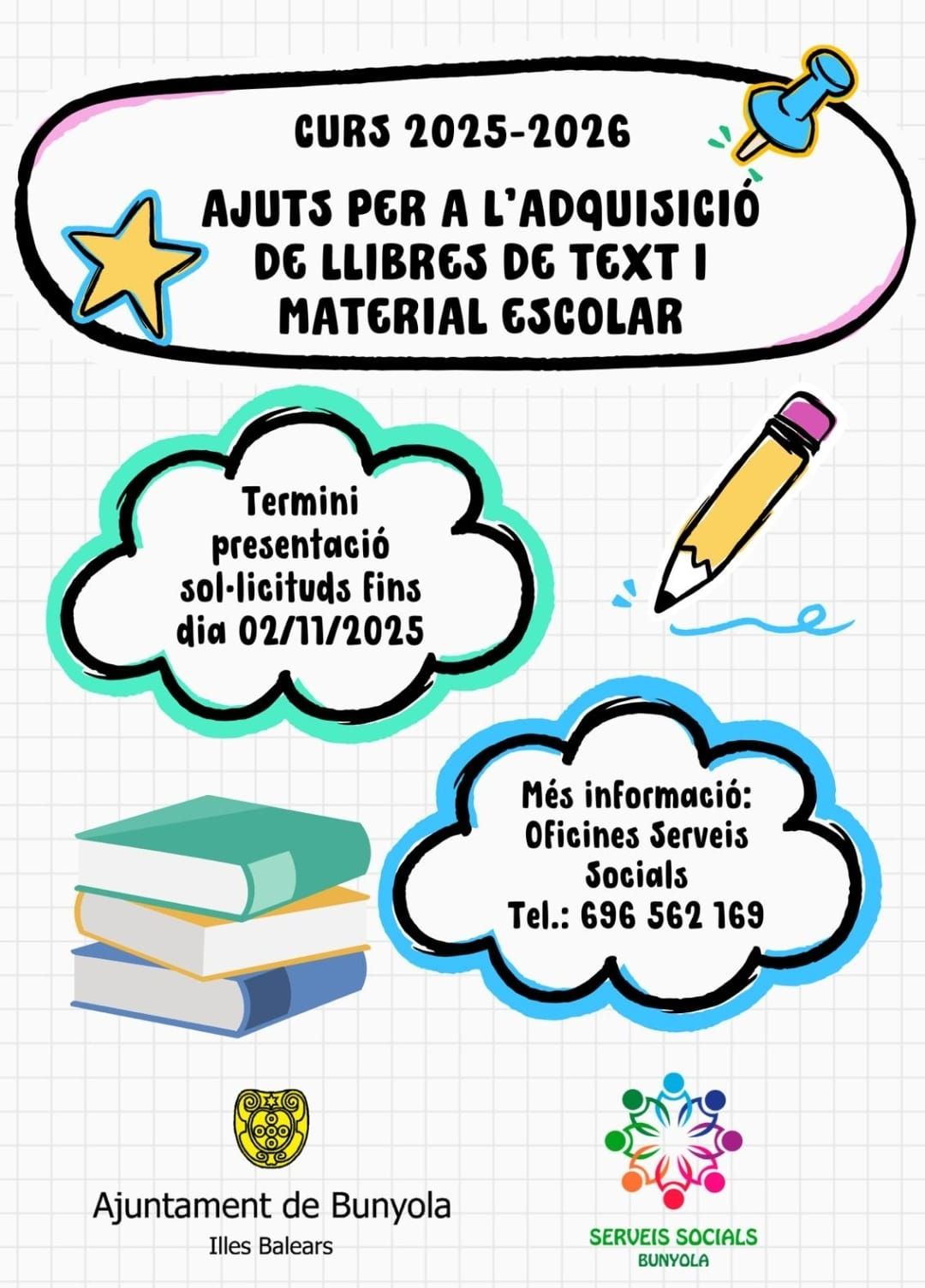 L'Ajuntament de Bunyola ha obert la convocatòria d’ajuts per a l’adquisició de llibres de text i material escolar, per donar suport a les famílies en la tornada a l’escola.