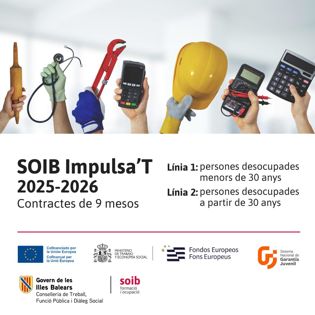 Amb aquesta nova convocatòria, «SOIB Impulsa’T 2025-2026», l’Entitat Local Menor de Palmanyola i el SOIB ofereixen un total de 2 llocs de treball: