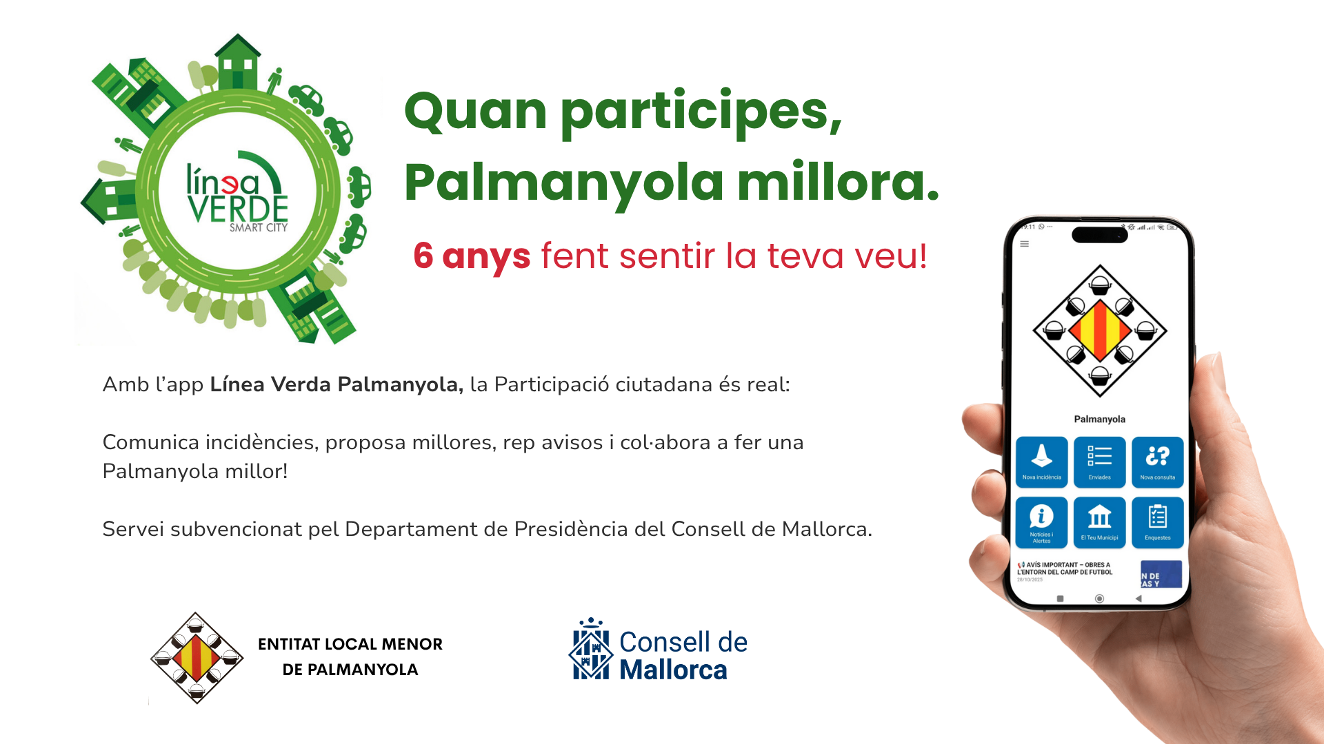 Fa 6 anys que Línia Verda Palmanyola és el canal directe entre els veïnats i l’ELM per comunicar incidències, fer consultes ambientals, participar en enquestes i rebre avisos d’interès.